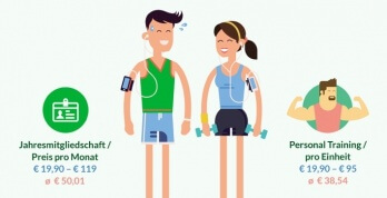 Unser Resultat: bei Jahresverträgen zahlt man monatlich ab 19,90 € bis 119 €, eine einfache Monatsmitgliedschaft im Fitnesscenter kostet zwischen 60 € und 139 €.